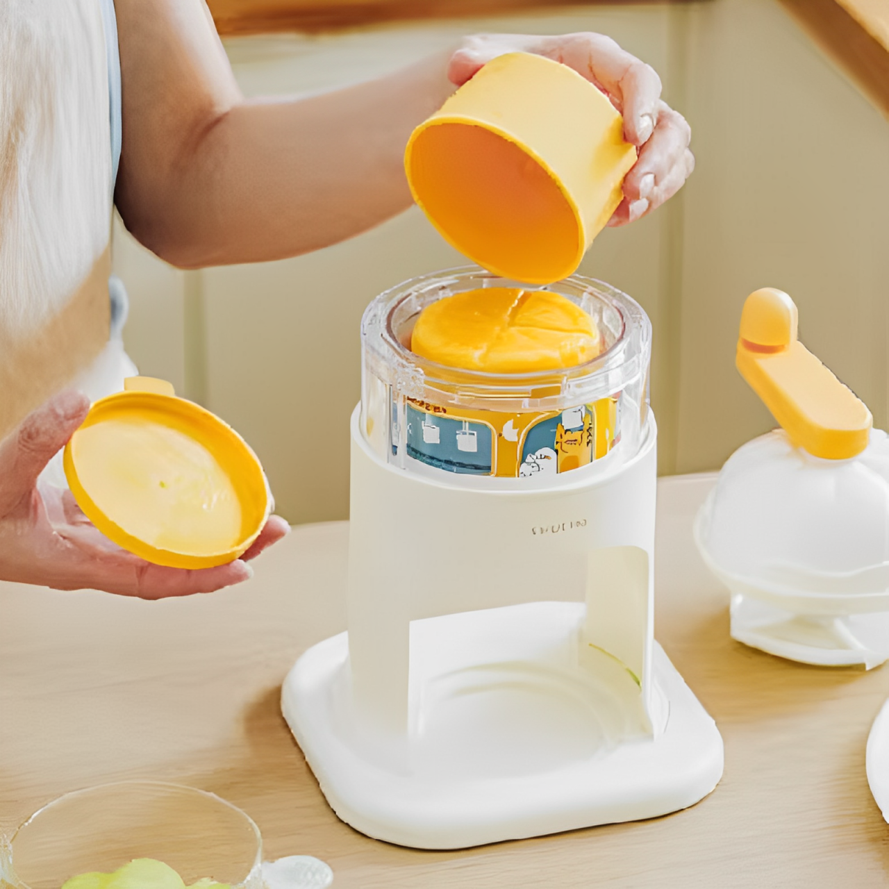 The manual handle allows children to safely shave ice, making it a fun, hands-on activity for the whole family.