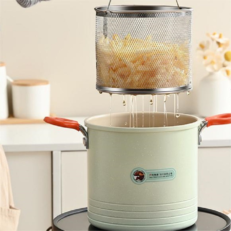 Say goodbye to oil burns and spills! Our Multipurpose Fryer Pot features a non-stick surface, added depth, and a stainless steel strainer for easy deep frying, boiling, or blanching. Suitable for induction and traditional cooking, it saves oil and ensures even cooking.