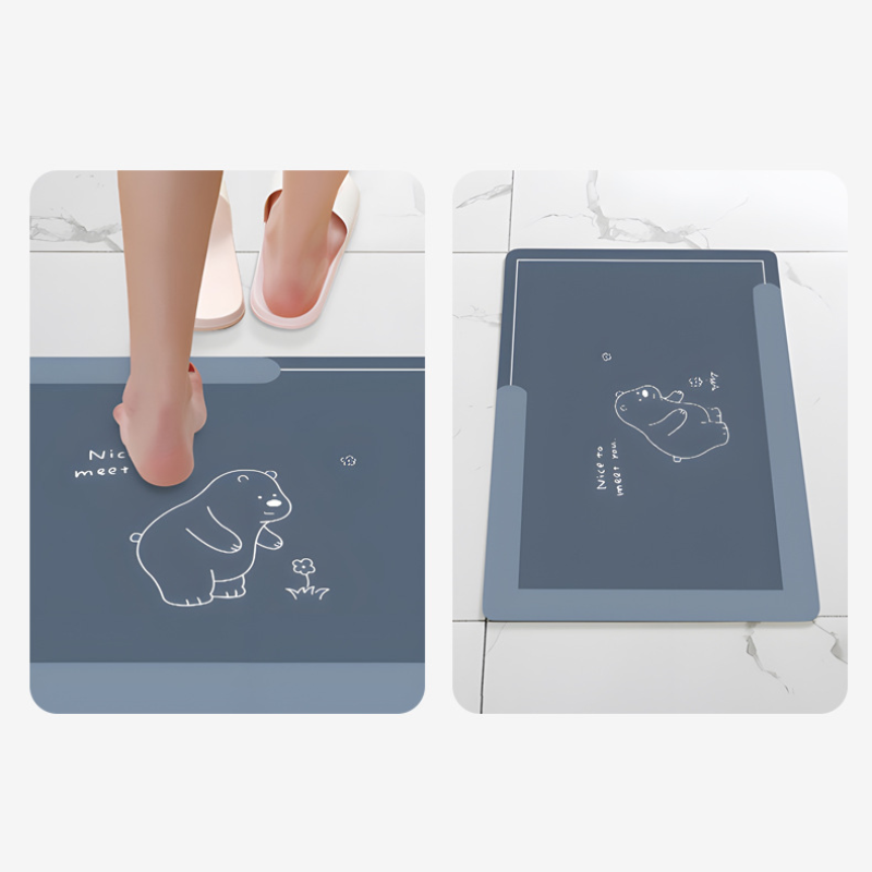 Say goodbye to slippery floors and hello to peace of mind with our Quick Dry Floor Mat. Made from innovative diatomaceous earth material, this mat absorbs liquid in a mere 3 seconds, leaving your floors dry and safe. Plus, its unique design features a strong friction to the floor, ensuring you won't accidentally slip on the mat. Whether you're showering, exercising, or simply stepping out of the tub, our Quick Dry Floor Mat has got you covered.