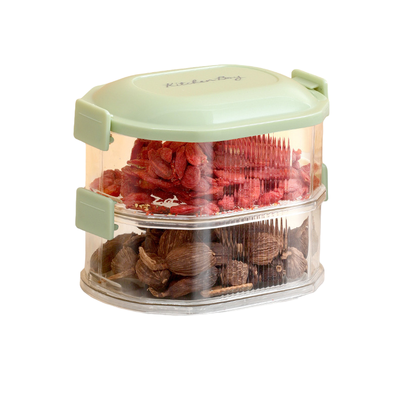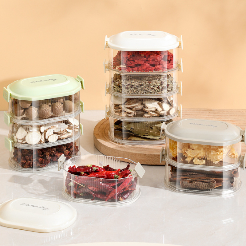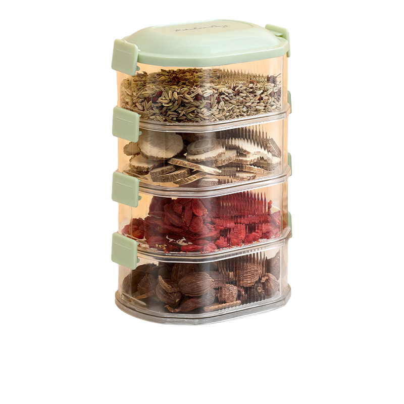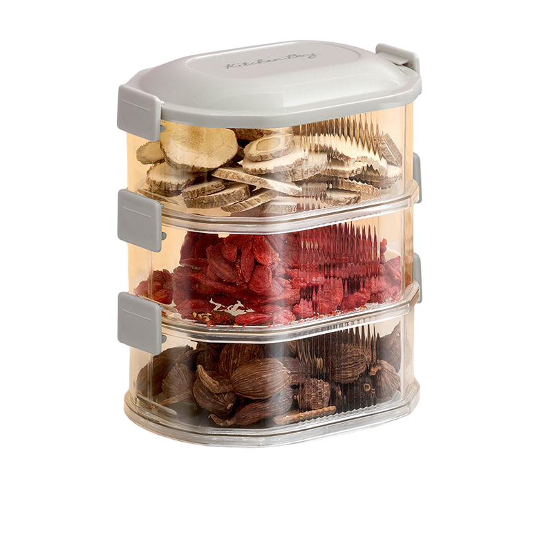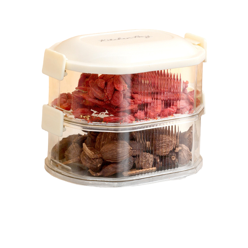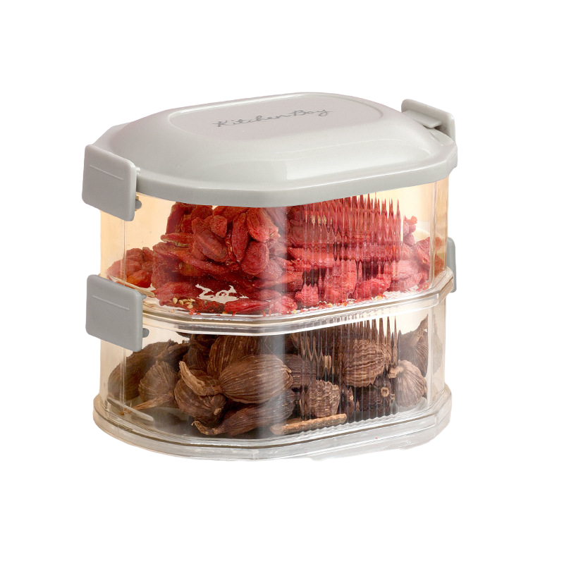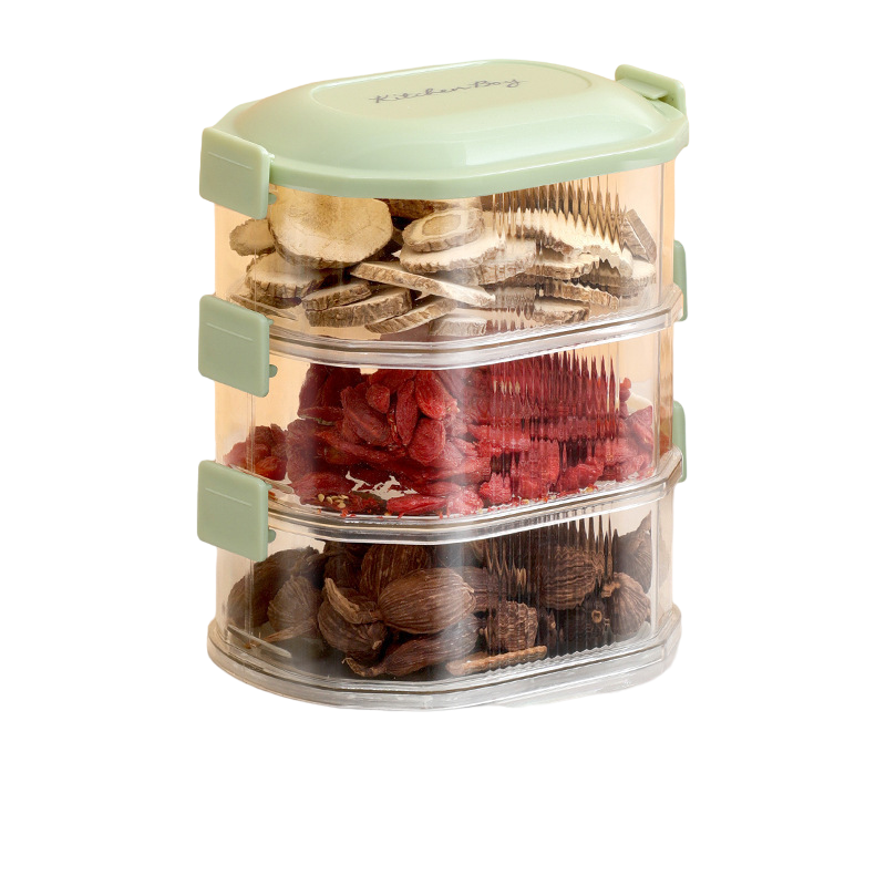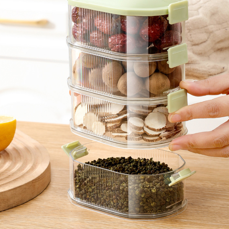 Transform your kitchen with our Spices Organizer and enjoy a clutter-free, efficient cooking experience. It's perfect for keeping your spices and dried ingredients neatly arranged and easy to find. Place it in any corner and categorize by stacking the boxes for quick visibility. The snap buttons provide easy access, while the lid's sealing ring prevents leakage and keeps contents fresh. Ideal for storing green onions, ginger, and garlic without absorbing other odors.