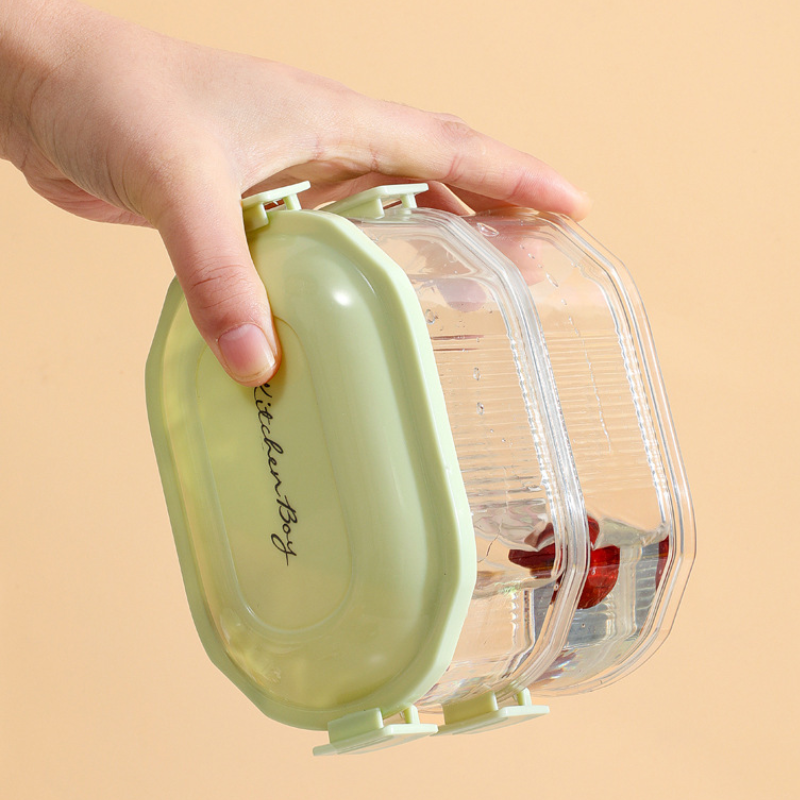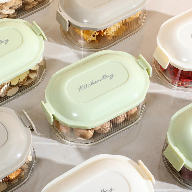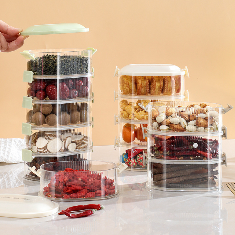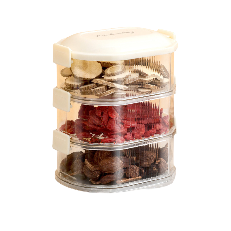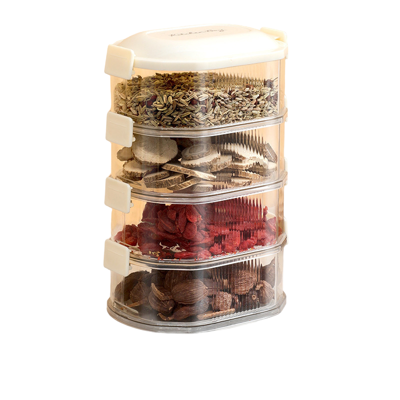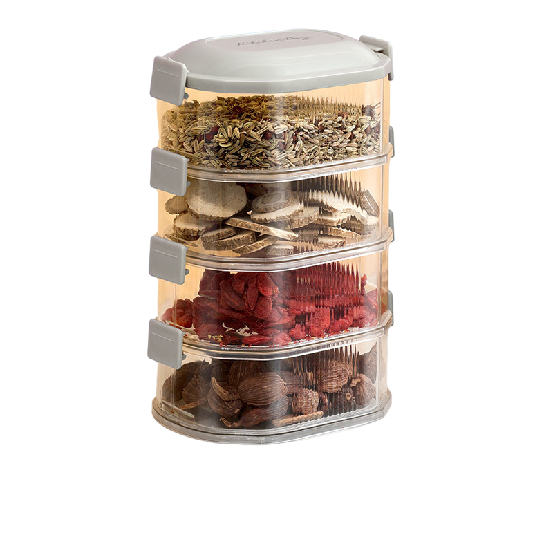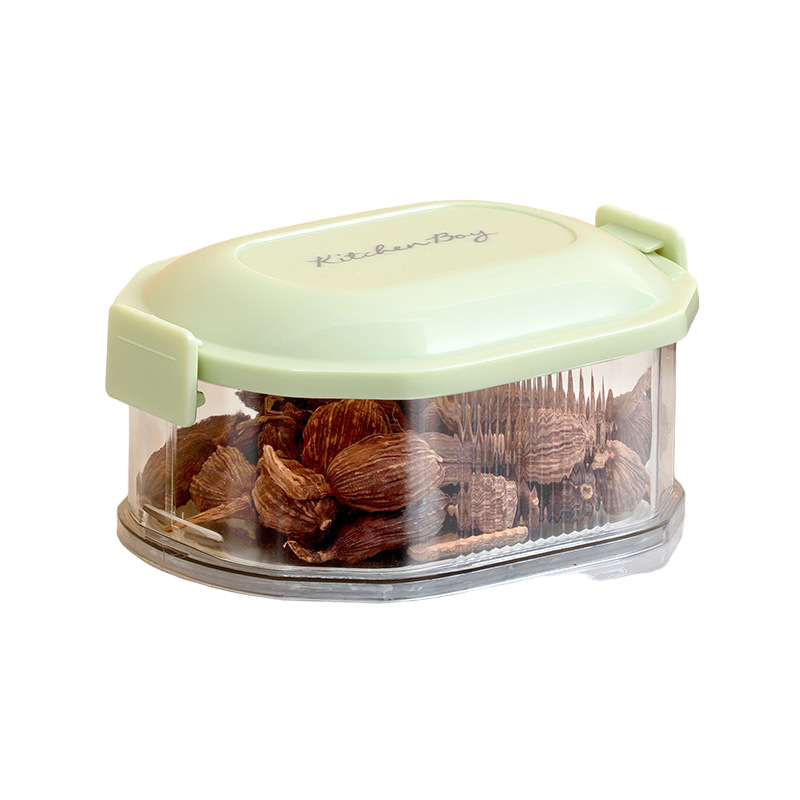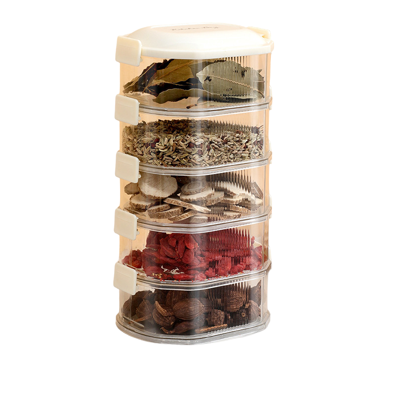 Transform your kitchen with our Spices Organizer and enjoy a clutter-free, efficient cooking experience. It's perfect for keeping your spices and dried ingredients neatly arranged and easy to find. Place it in any corner and categorize by stacking the boxes for quick visibility. The snap buttons provide easy access, while the lid's sealing ring prevents leakage and keeps contents fresh. Ideal for storing green onions, ginger, and garlic without absorbing other odors.